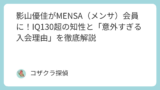 - 学歴: 超難関校での研鑽と、MENSA合格に象徴される終わなき知的好奇心。