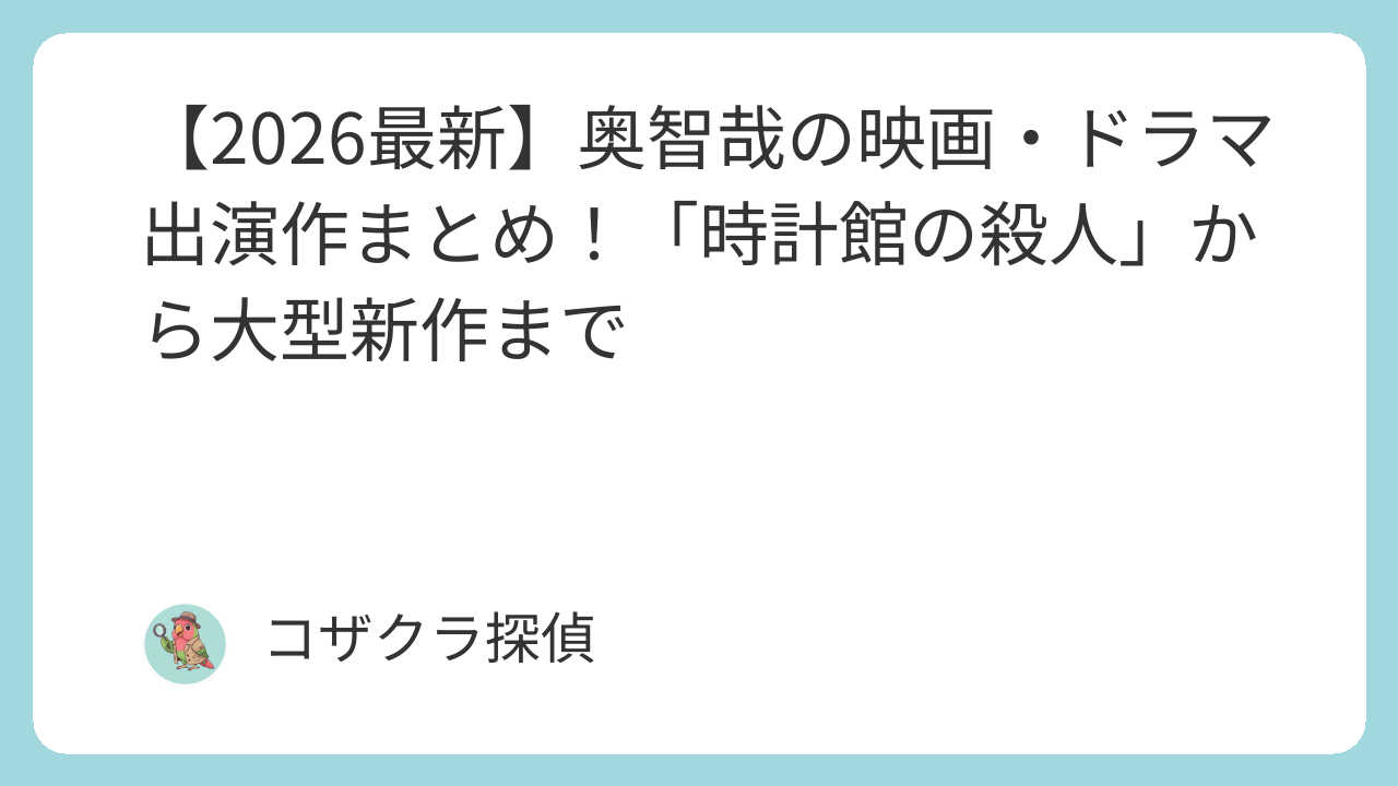 この記事では、2026年に公開・配信される奥智哉さんの最新情報を、役どころや見どころとともに速報でまとめます。